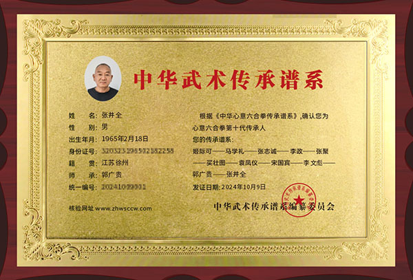 张井全传承证书