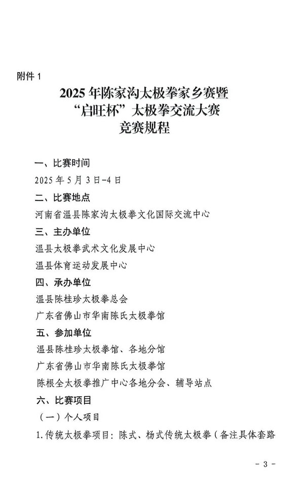 2025年陈家沟太极拳家乡赛暨“启旺杯”太极拳交流赛的通知