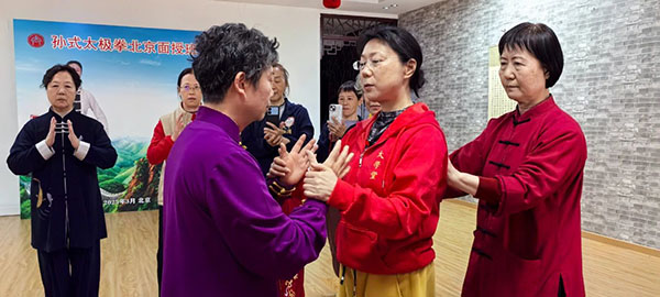 几天时间中,在严静老师精心指导下,大家把孙式太极拳73式完整整合一遍,从动作规格,到内练要求,仔细到位。一对一地对每个人的具体特点,进行了针对性指导教学。严静老师手把手地教,心贴心地传,毫不保守,耐心细致,大家深深感受到严静老师精湛的功夫和优秀的师德。